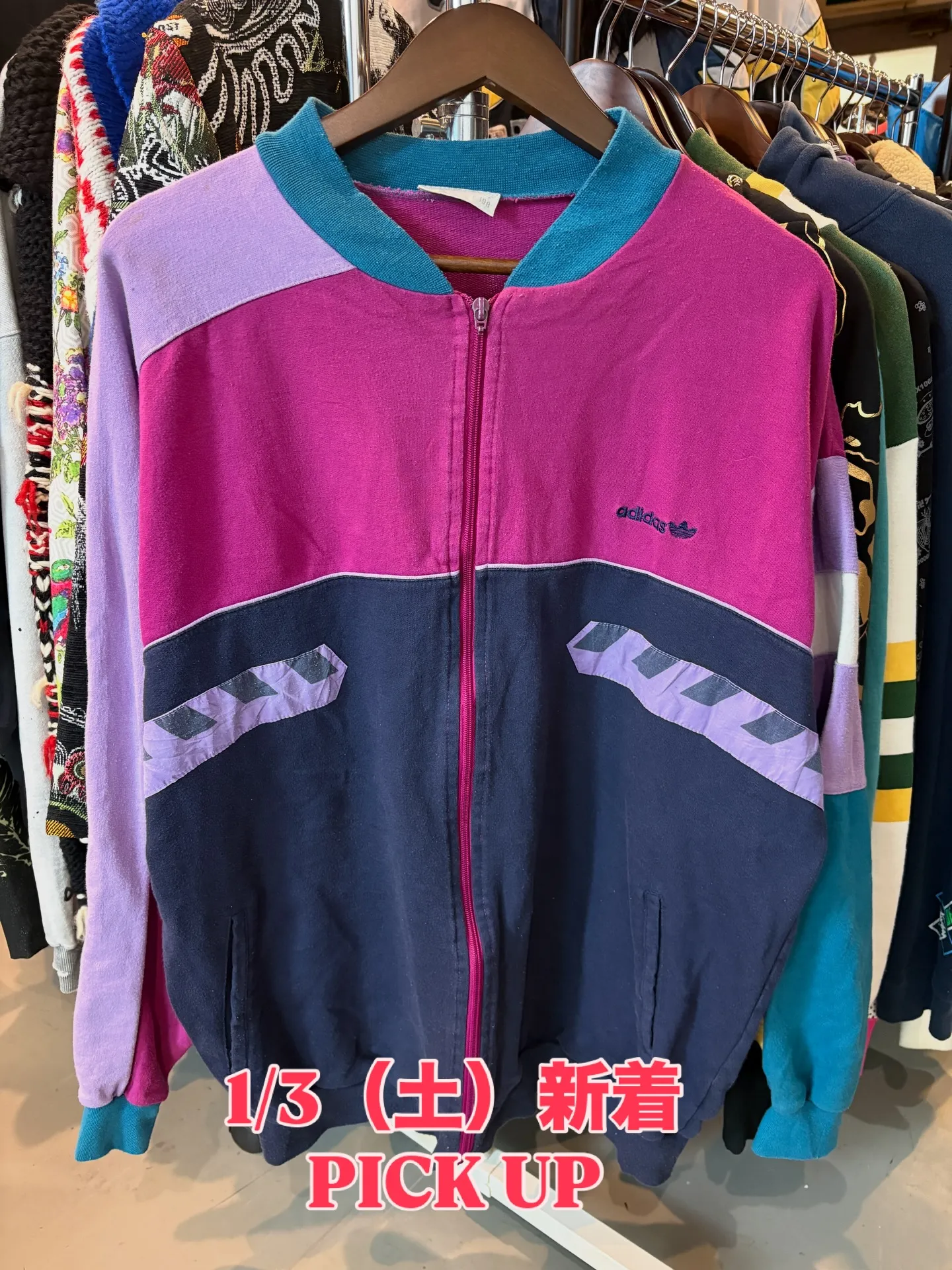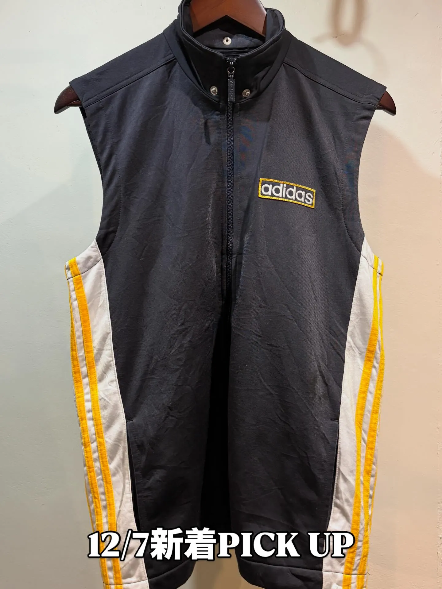 #古着屋#vadical#青葉台💥12/7新着PICKUP🎉🧥adidasVintageTrackVestBigLogo/SizeXL相当ブラック×イエロー×ホワイトの存在感ある配色に、背面のビッグロゴ&トレフォイルが映えるトラックベスト。サイドのス…