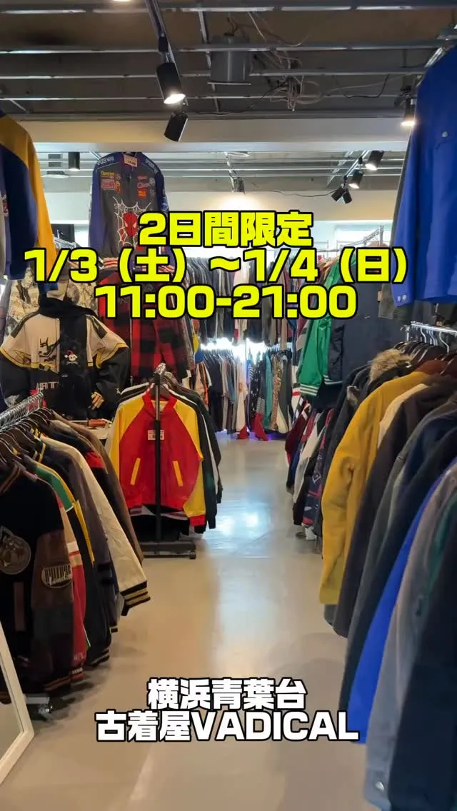 古着屋VADICALより1/3(土)1/4(日)初売りBIGSALE11:00〜21:00⭐️衝撃価格商品50%OFF〜80%OFFの商品を2日間合計で100着→200着以上出していきます🎊⚠️衝撃価格商品の販売開始時間は1/3(土)、1/4(日)、…