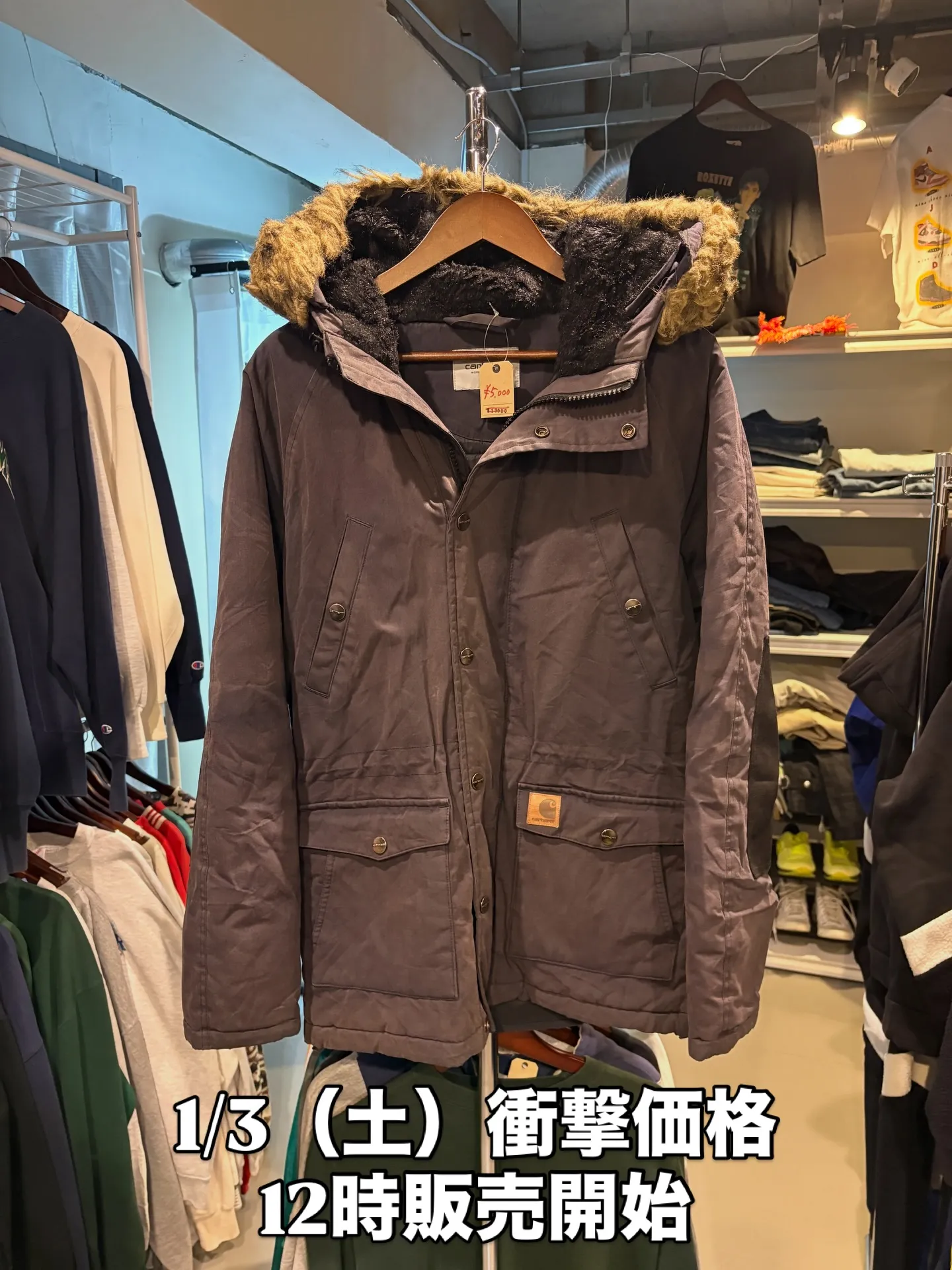 古着屋VADICAL1/3(土)1/4(日)初売りBIGSALE2日間合計で100着以上出していきます🎊🎉1/3(土)衝撃価格PICKUP動画に載せている商品は1/3(土)販売します。carharttトラッパーパーカー¥13,000→¥5,000サ…